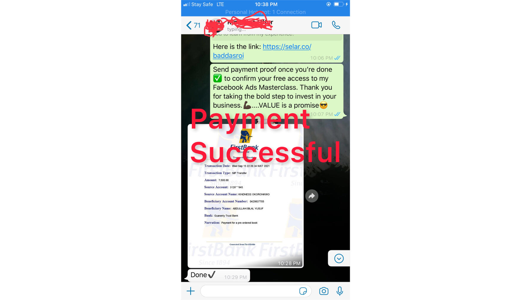 You can WhatsApp the number in the screenshot above to confirm. It’s my business number.