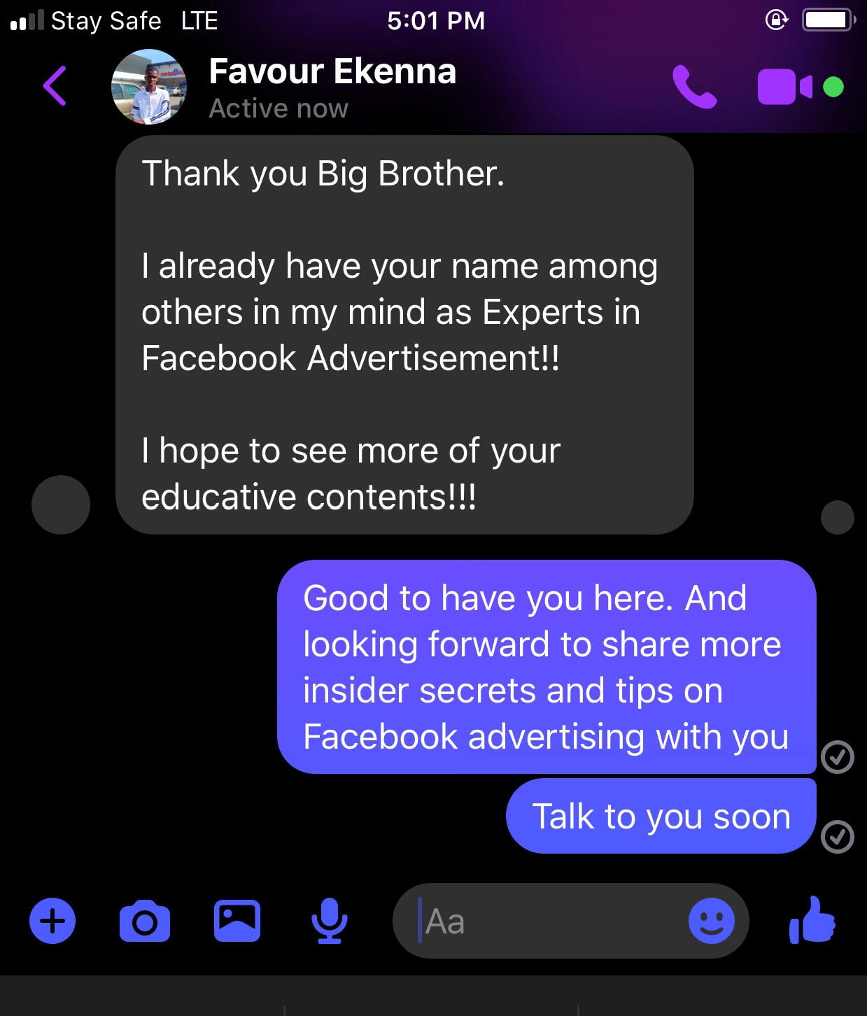I also charge N40,000 Naira to have one-on-one Facebook Ads mentorship with me on WhatsApp.